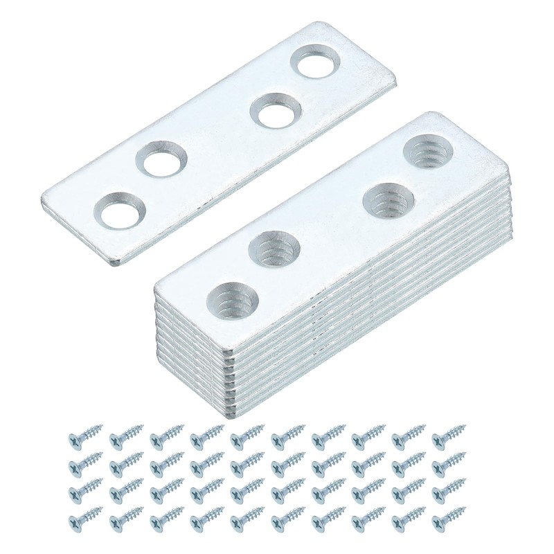 sourcing map 24 Set Mending Plate Metal Flat Bracket Straight Brace Fixing Joining Plate for Wood with Screws, Silver, 2.32"x0.75"