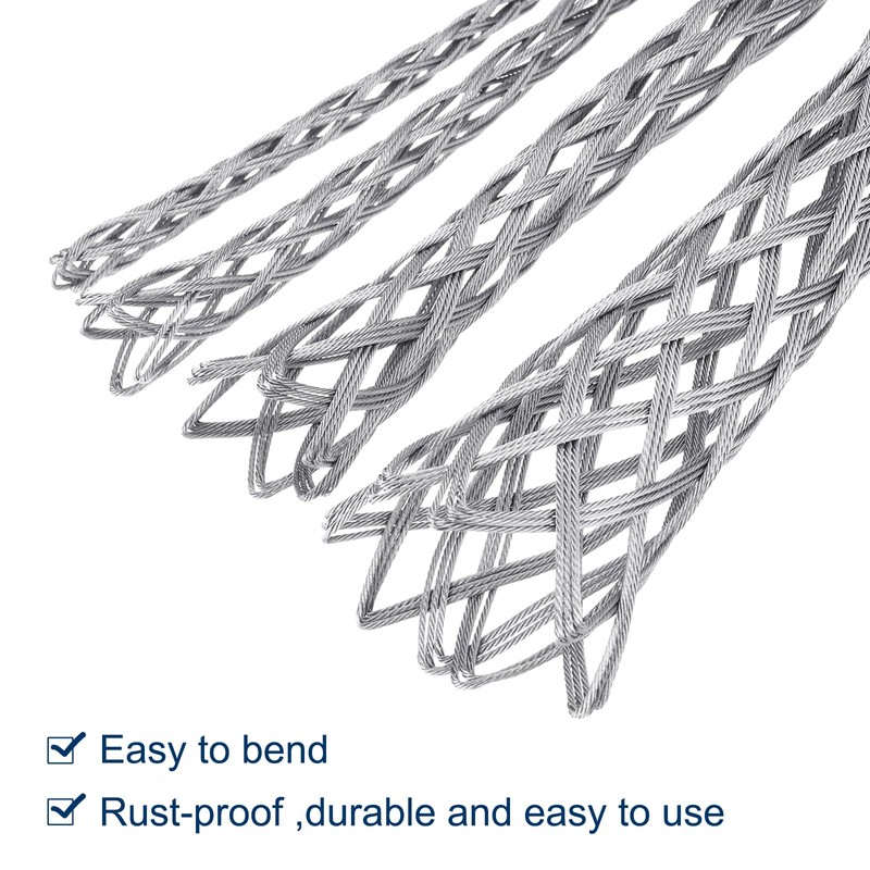 It is made of Galvanized steel material,rust-proof ,durable and easy to use,soft, easy to bend;Its special eye mesh structure variable mesh automatically adjusts its grip to provide non-slip pull and protect cable insulation from damage.