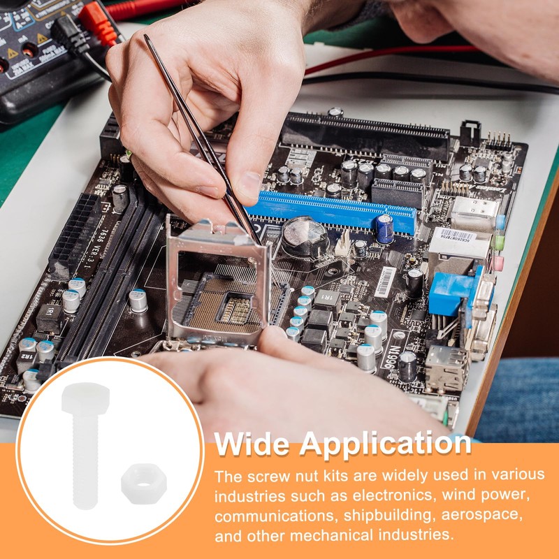 Material - The screws and nuts are made of nylon and are small in size. These components are anti-static, insulated with good insulation, corrosion resistance, and rust resistance, and have a long service life than metal screws and hex nuts