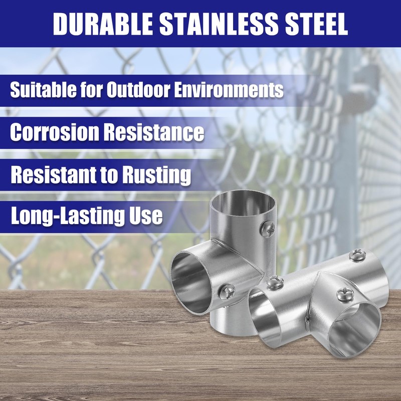 sourcing map 2Pcs 3-Way Pipe Fitting Connector, Fit 1 Inch(25mm) OD Pipe Stainless Steel Structural Pipe Connector Chain Link Fence Clamp