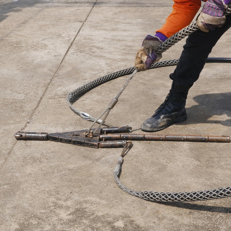 Attach a pull cord or other pulling device to the cable pulling socks grip. Use a pulling device to gradually apply force to pull the cable out or move it toward the target location.