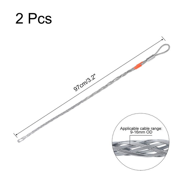 • Length: 97 cm/3.2 Ft; Suitable for Pipe Dia.: 9-16mm/0.35-0.63-inch; Wire Dia.: 15mm/0.59-inch; Color: Red; Material: Galvanized Steel; In the package of: 2 x Cable Pulling Socks Grip