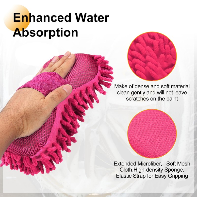 sourcing map 2pcs Car Wash Sponge 8.7" x 4.3" Chenille Microfiber Mitt Scratch-Free Absorbent Scour Scrubber Cleaning Sponge for Washing Detailing on Cars, Trucks, SUV, Boats, RVs, Pink