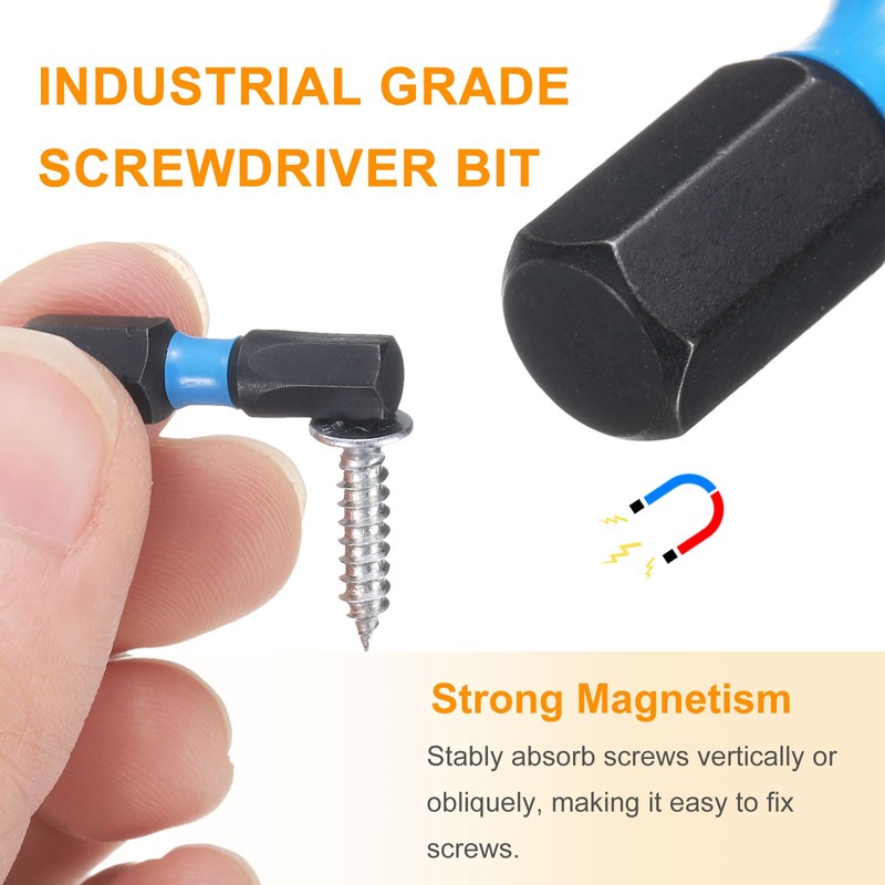 - Feature - Industrial screwdriver bit adopts a strong magnetism design and can absorb screws vertically or tilted. The head is a hexagonal flat head shape, which can make close contact with the screw, making disassembly and installation more stable and less likely to slip.