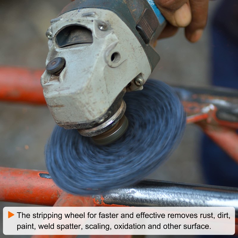 - Application - The stripping wheel for faster and effective removes rust, dirt, paint, weld spatter, scaling, oxidation and other surface.