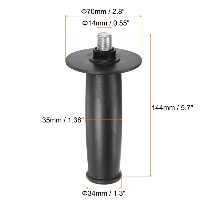 - Size - Thread Diameter: 14mm / 0.55", Handle Diameter: 35mm / 1.38", Total Length: 144mm / 5.7", Maximum Outer Diameter: 70mm / 2.8", Bottom Diameter: 34mm / 1.3".