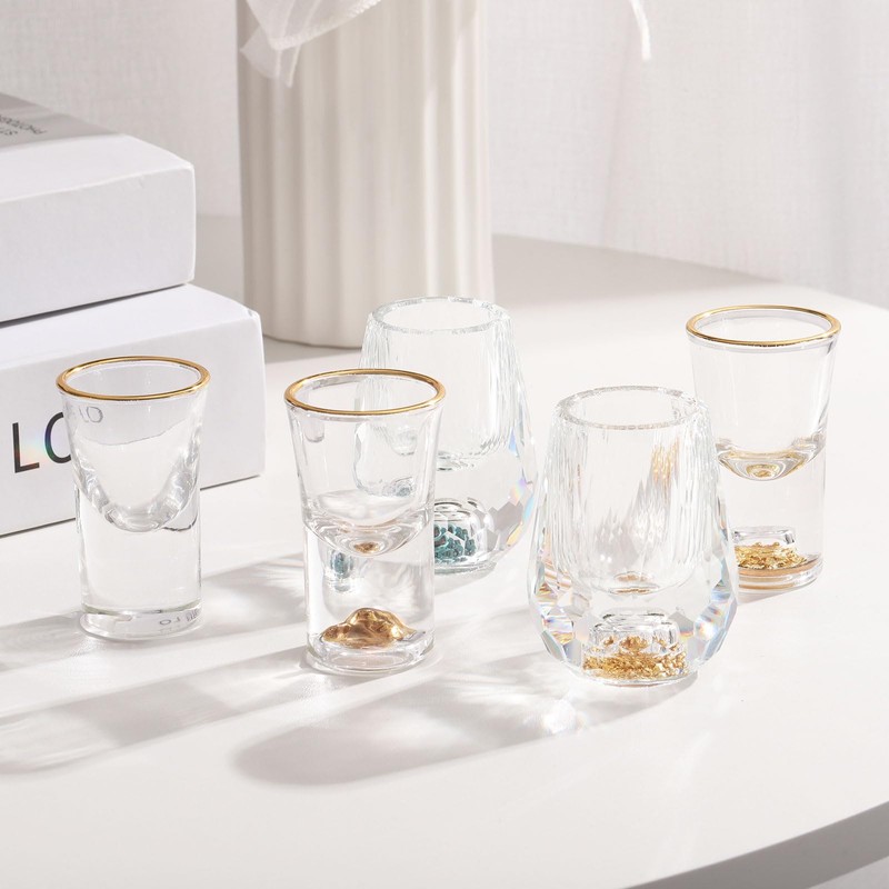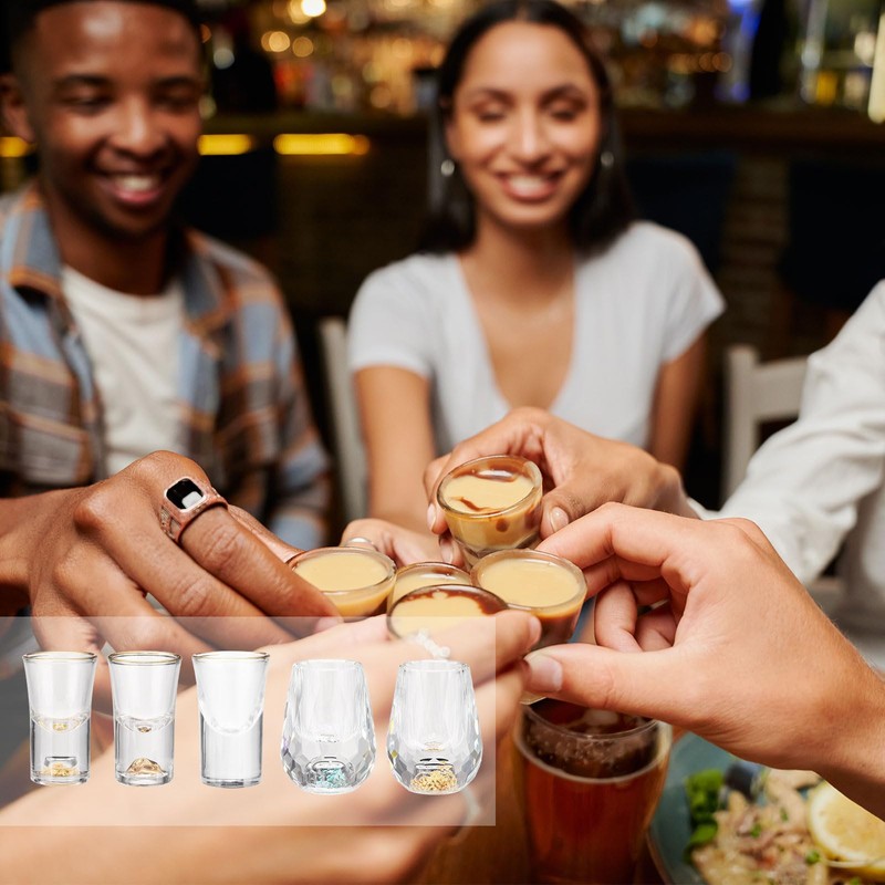 sourcing map 2pcs Shot Glasses 0.5oz Polystyrene Shot Glasses with Gold Mountain Shot Glasses Bulk for Cocktail Round Shot Glasses Spirits Liquors