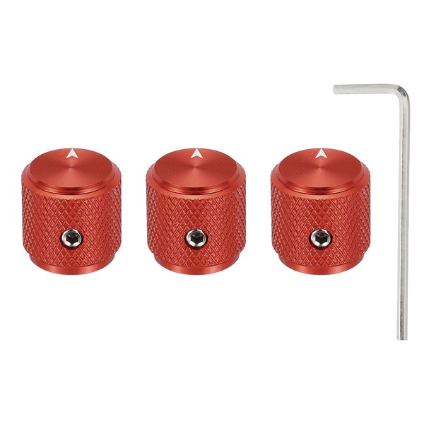 sourcing map 3 Pcs Aluminium Potentiometer Knobs, 1/4" (6mm) Universal Volume Tone Control Knobs with Arrow Indicator for Guitar, 1/2" Red