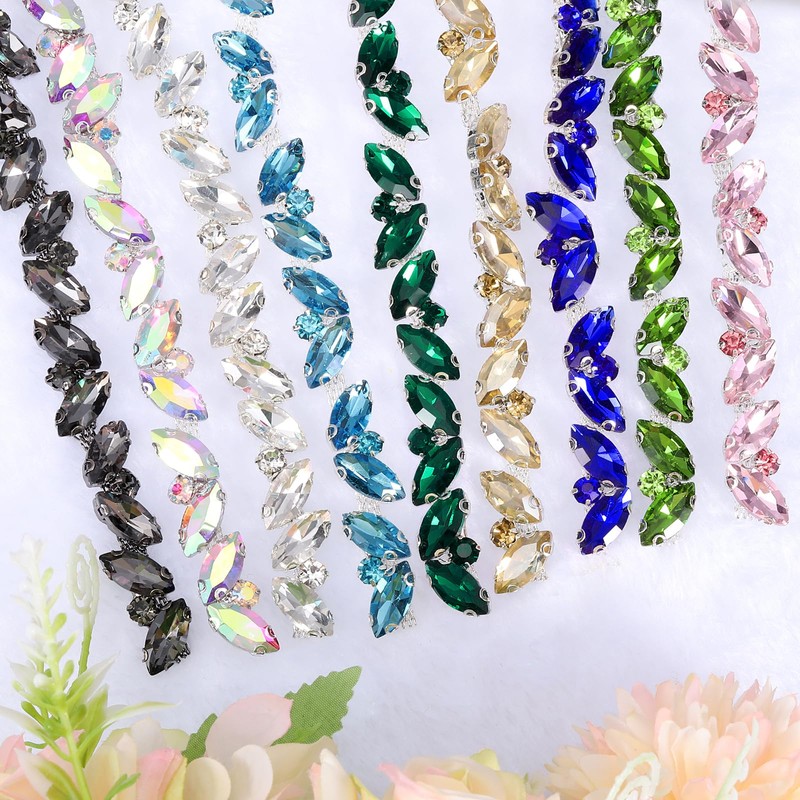 - Included - You will receive 3 yards leaf shaped crystal rhinestone chain in the package, chain width: 10mm/0.39"; Usage: garments, shoes, bags, boxes (anything you want to decorate); Multiple colors and sufficient length Meet the daily needs of you and your family.