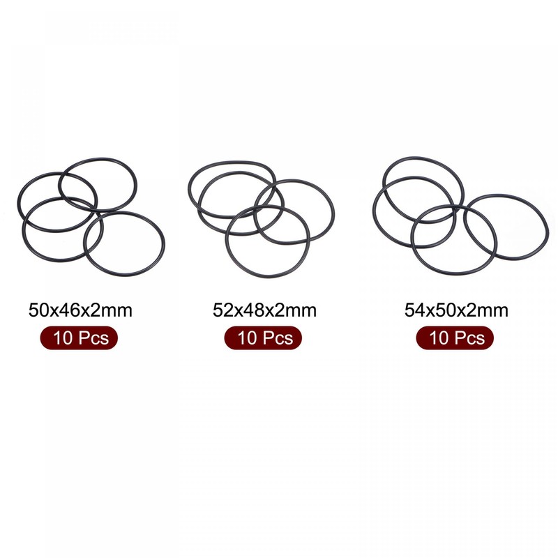 sourcing map 30-in-1 Nitrile Rubber O-Ring Set 50 mm 52 mm 54 mm OD 46 mm 48 mm 50 mm ID 2 mm Thick Seal Black