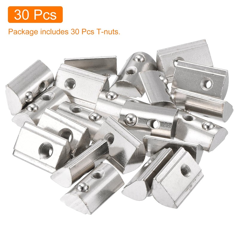 sourcing map 30Pcs M4 T Spring Nuts Fastener Carbon Steel Nickel Plated Half Round Roll in Spring T Slot Nut for t-Slot Aluminum Profile 3D Printer, CNC Router 4545 Series