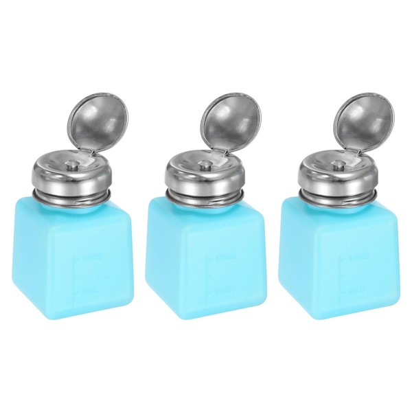 sourcing map 3pcs Solvent Alcohol Dispenser 100ml Push Down Dispenser Pump Bottle, Blue