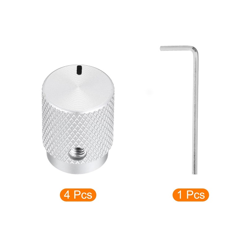 sourcing map 4 Pcs Aluminium Potentiometer Knobs, 1/4"(6mm) IDx1/2"(12.5mm) ODx5/8"(16mm) Height Universal Volume Tone Control Knobs for Guitar, Bass, Oval Indicator, Matte Silver