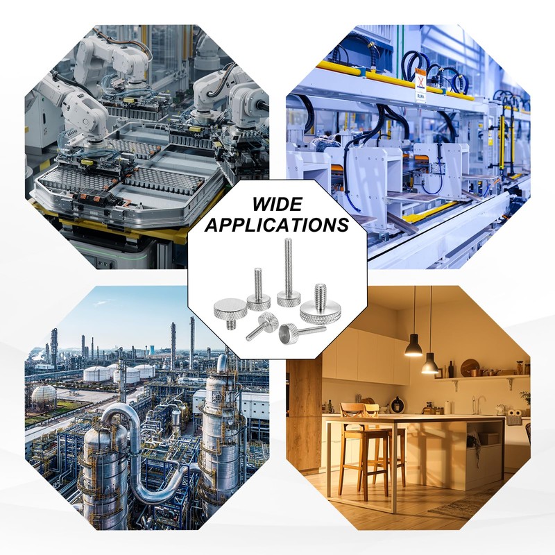 Knurled thumb screws are widely used in computer graphics cards, PC computer cases, mechanical equipment, the communication industry, hard disks, automobiles, and the lighting industry. They are reliable fasteners for various tasks. They are mainly used in DIY projects, electronic equipment, mechanical parts, decorative products, etc.