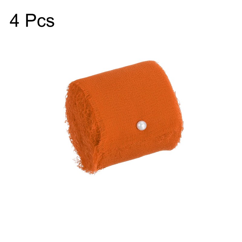 sourcing map 4 Rolls Chiffon Ribbon 1" x 5.5Yd Handmade Fringe Chiffon Silk Ribbon for Bouquets Gift Wrapping Wedding Invitations DIY Crafts, Orange