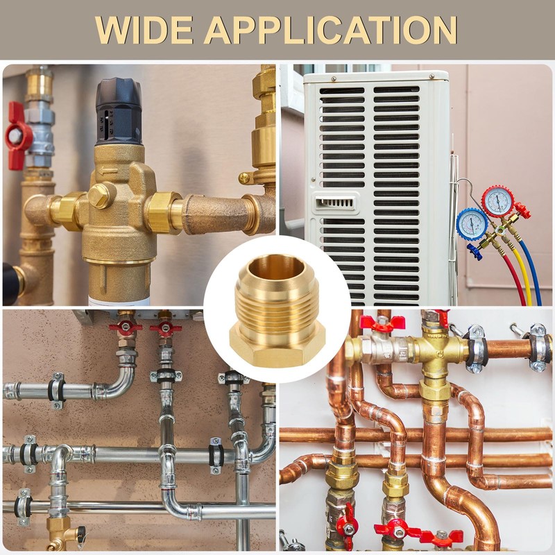 - [Widely Applicable]: The brass flare plug is designed for high-pressure environments and can be used to terminate/close pipe ends, gas pipelines, hydraulic systems, and refrigeration units. It is widely used in the connection of fuel, oil, air, propane, and liquefied petroleum gas pipelines to ensure safe and reliable connection effects