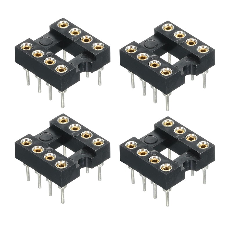 sourcing map 4pcs DIP IC Chip Socket Adapter Round Pin 8P 2.54mm Pitch IC Socket for PCB Board Chip, 7.6mm Black
