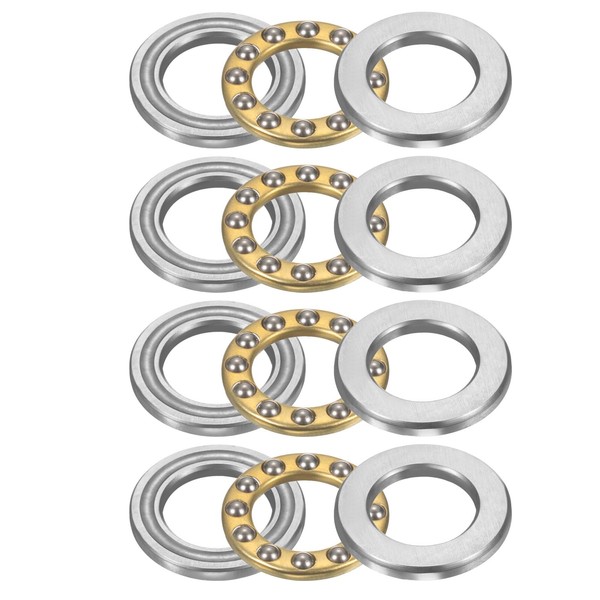 sourcing map 4pcs F12-20M Thrust Ball Bearings, 12mm x 20mm x 7mm Miniature Thrust Bearing with Washers Chrome Steel Single Direction for Conveyor Systems Machine Tools