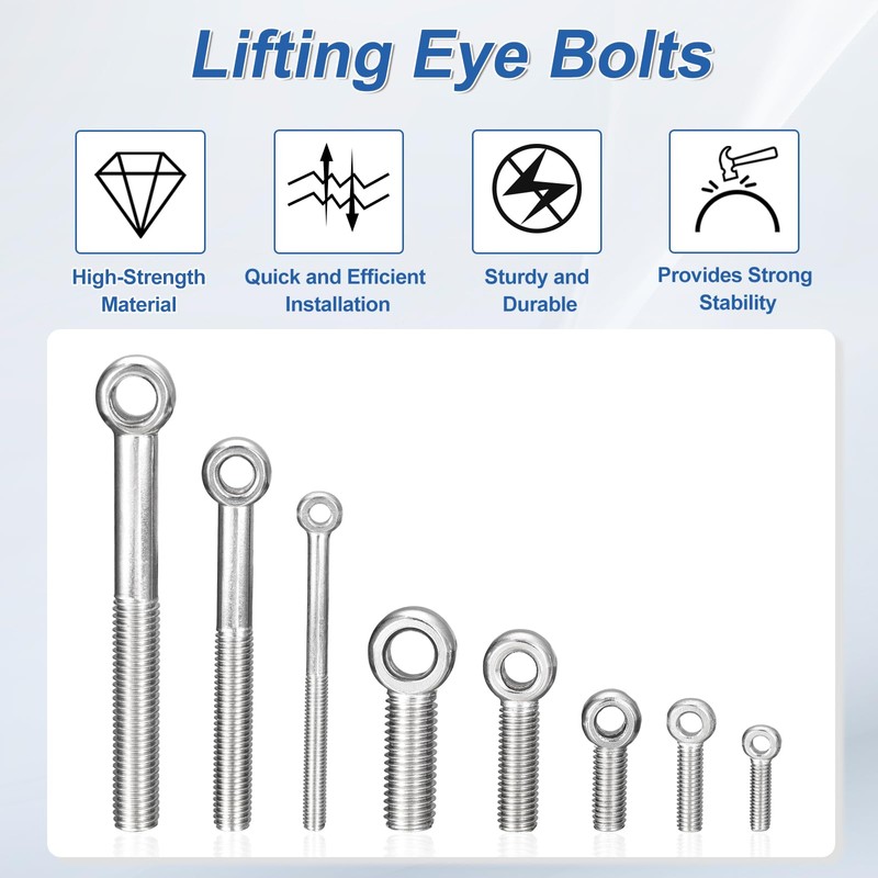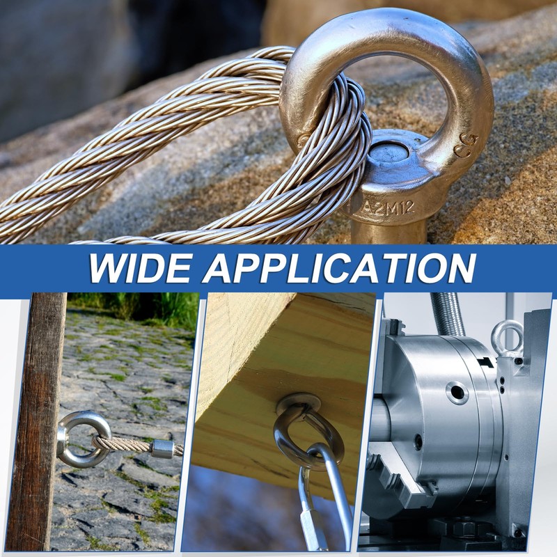 - [EASY TO USE]: Our eye bolts are easy to use. You only need to put it into the pre-drilled hole prepared in advance, and then tighten it firmly. It can be installed quickly and efficiently, saving you time and energy during the project