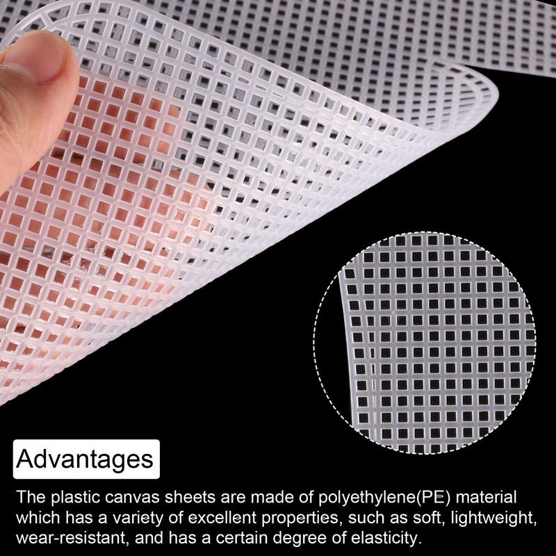 - The plastic canvas sheets are made of polyethylene(PE) material which has a variety of excellent properties, such as soft, lightweight, wear-resistant, and has a certain degree of elasticity.