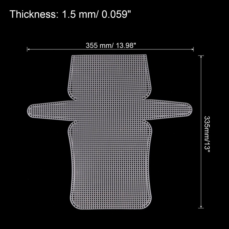 - Package Content: 4Pcs x Plastic Canvas Mesh Sheet; Length: 33.5 cm/ 13 inch; Width: 355 mm/ 14 inch; Thickness: 1.5 mm/ 0.06 inch