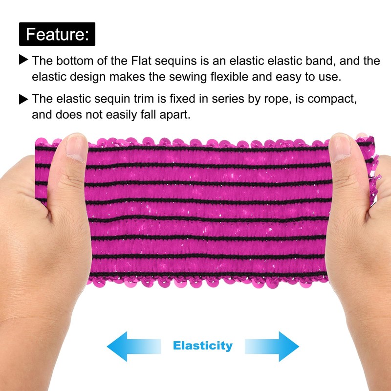 - This elastic sequin trim is mainly used for craft and DIY sewing. You can use it to DIY your stage performance costumes, DIY various patterns for your clothes or hats, and other accessories so that your clothing or accessories have different styles. Perfect for various decorating for holiday clothes