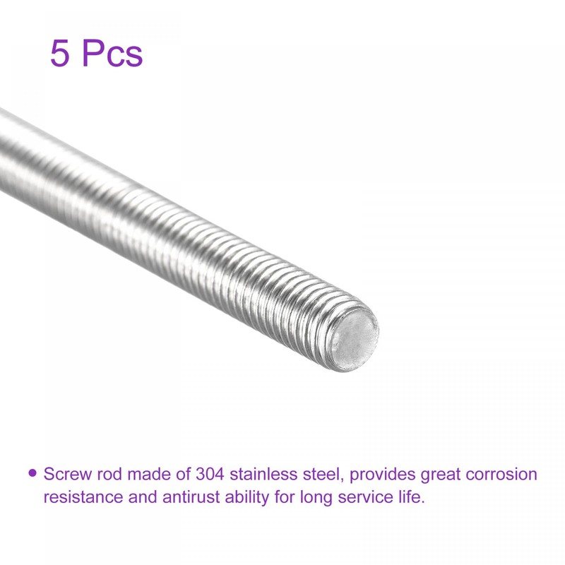 sourcing map 5 Pack M5 x 170mm Fully Threaded Rod 304 Stainless Steel Right Hand Threads Rod Bar Studs Clamps and U-Bolts