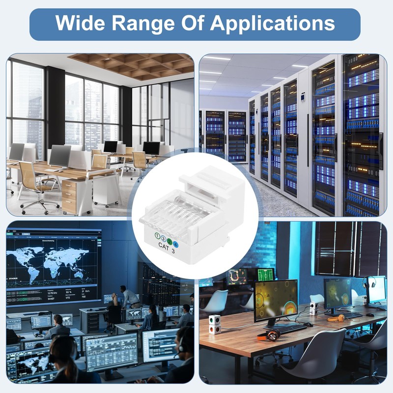 - CAT3 telephone jack module is a module used for communication, usually connected through RJ11 interface, suitable for telephone, network and other communication equipment, widely used in home, office and other scenes.