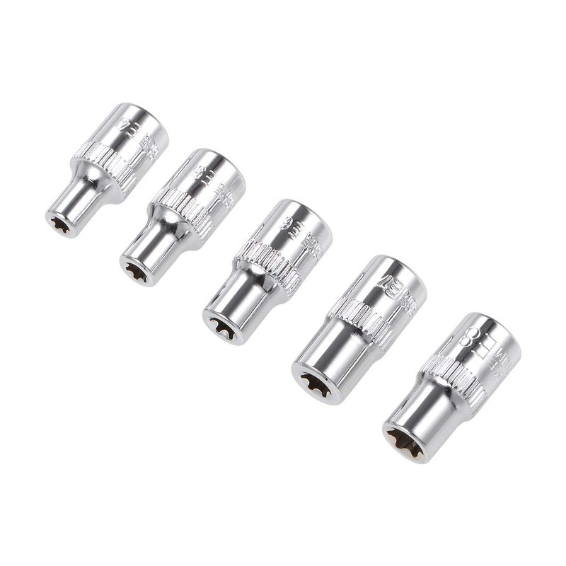 sourcing map 5-Piece Flat Socket Set External Torx 1/4 Inch Drive E4 E5 E6 E7 E8 Cr-V Steel