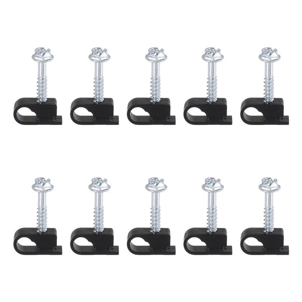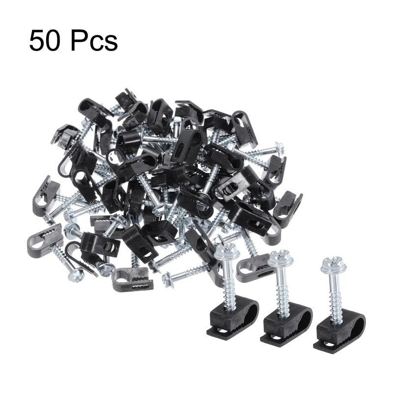 sourcing map 50pcs Single Coaxial Cable Clips 1/4" (6mm) Screw Clip Electrical Wire Cable Holder Plastic Wire Clamps for Cords Management, Black