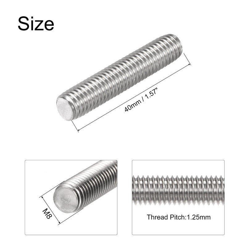 - Material : 304 stainless steel;Total Length: 40mm/1.57"; Thread: Right Hand Thread; Thread Pitch:1.25mm