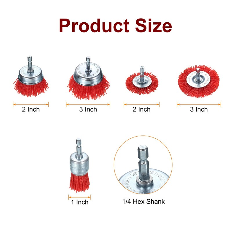 - Size - The nylon wheel brush for drill measuring diameter of 1",2",3", ensuring compatibility with various tasks. Each brush has a fine 100 grit nylon filament for surface cleaning.