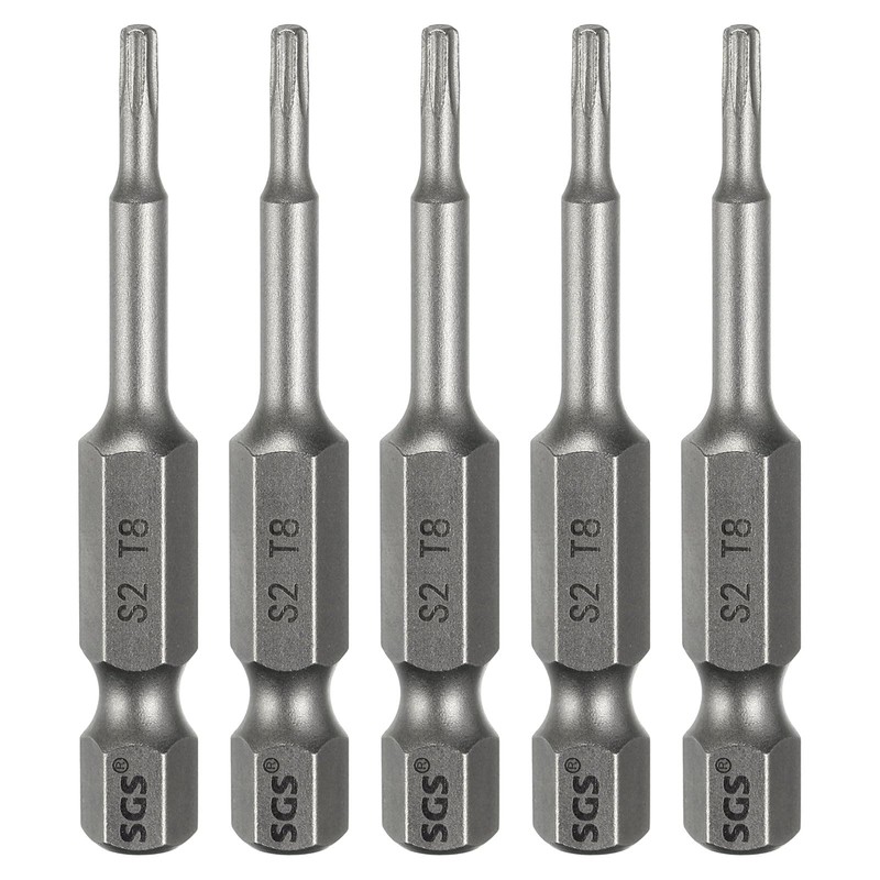 sourcing map 5pcs T8 Torx Head Screwdriver Bit 1/4" Hex Shank 2" (50mm) Long Magnetic No Hole Tip Tamper Proof 6 Point Star Screw Driver Drill Bits S2 Steel Industrial Power Screwdrivers