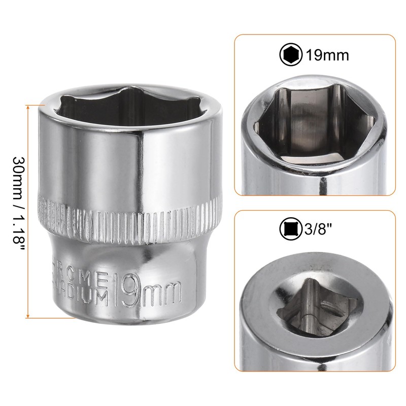 - Size - 6 Point Socket Size: 3/8" Drive x 19mm Deep; Total Length: 30mm / 1.18"; Package includes: 1 x socket.