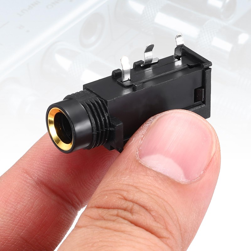- This TS female jack socket adopts pin-mount design, which can be easily connected and integrated on the PCB circuit board without complicated installation steps. Equipped with a thread locking feature to securely fasten to the panel after installation to prevent loosening. Install it on your device to provide an additional audio interface and enjoy stable and reliable audio signal transmission.