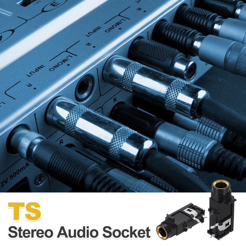 - A 1/4" (6.35mm) TS dual channel jack socket is an audio connector, designed to transmit dual channel audio signals. Its main function is to interface instruments or audio equipment, such as car audio, guitar, or microphone, ensuring simple, reliable signal transfer.