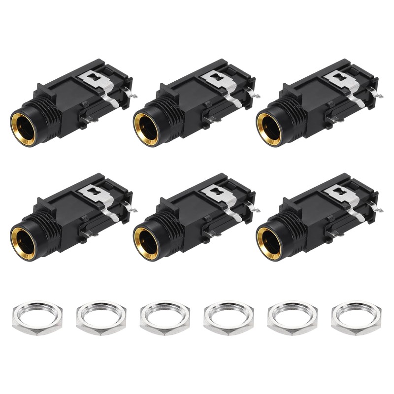 sourcing map 6pcs 1/4" 6.35mm Stereo Audio Jack, 50V 3 Pin Female Gold Plated PCB Mount Jack Video Connectors Stereo Headphone Socket with Nuts for Headphone, Speaker, Car Audio, 33x17x13mm
