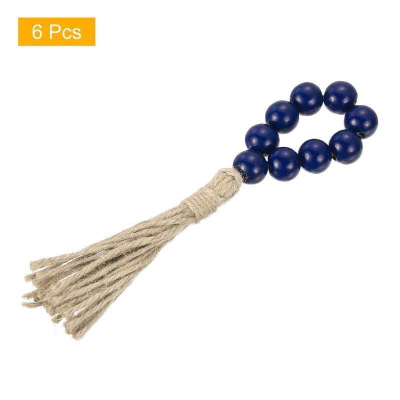 sourcing map 6Pcs Wooden Bead Napkin Rings, Farmhouse Wood Bead Napkin Buckles with Jute Rope Tassels for Christmas Thanksgiving Wedding Home Table Decor (Dark Blue)