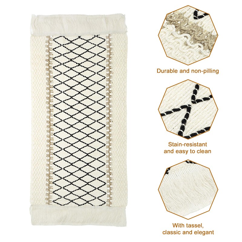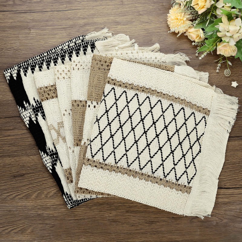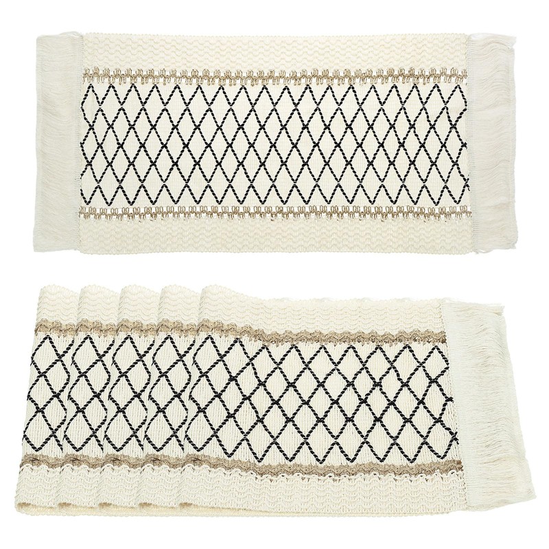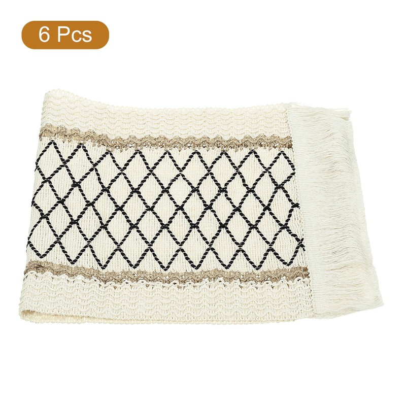 sourcing map 6Pcs Woven Cloth Placemats, Doilies with Tassels Place Mats Farmhouse Braided Beige Linen Macrame Table Mat for Dining Table Kitchen Party 11.81x19.69 inch, Gray Black