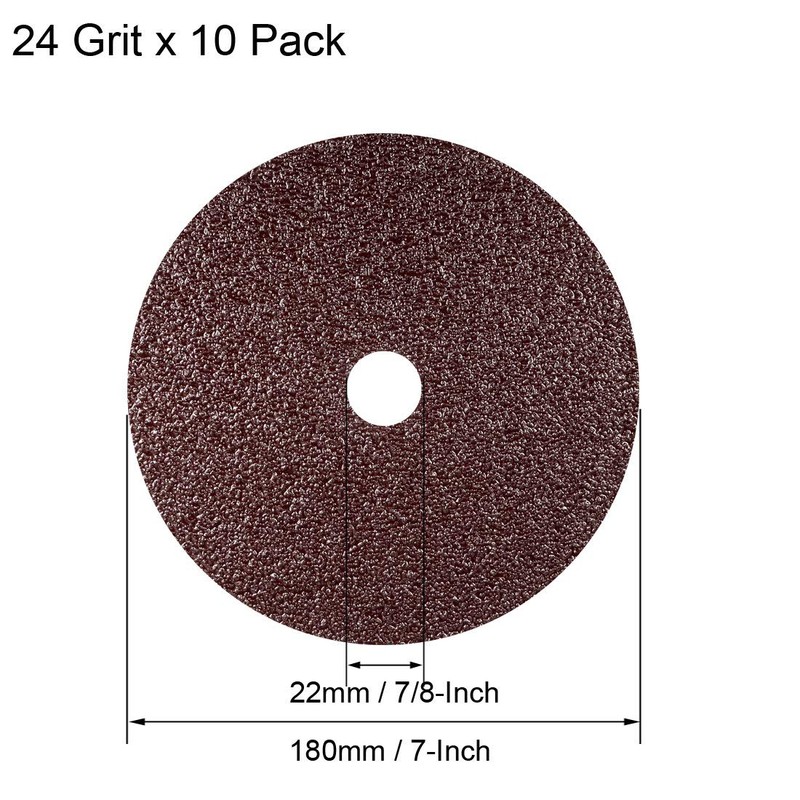 sourcing map 7-Inch x 7/8-Inch Aluminum Oxide Resin Fiber Discs, Center Hole 24 Grit Sanding Grinding Discs, 10 Pack