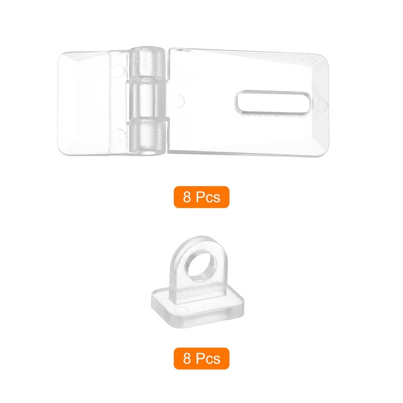 - [Acrylic Hasp Latch] - Total Size: 40 x 16mm/ 1.57inch x 0.63inch(L*W); Mounting Hole Size: 11x3mm(L*W); Hasp Lock Size: 13x12mm(L*W); Hasp Lock Mounting Size: 5mm; Package Content: 8pcs x Hinge Hasp