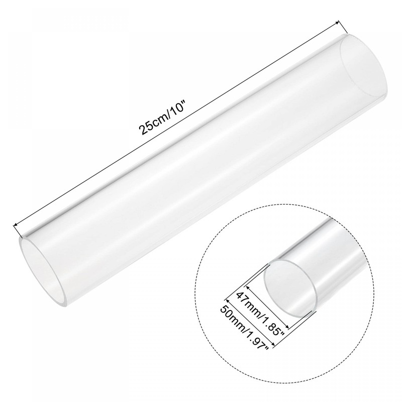 • The acrylic plastic tubing, is in size of : 47mm/1.85-inch inner dia, 50mm/1.97-inch outer dia, 25cm/10-inch total length