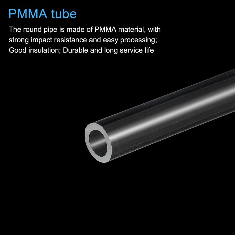 - Round PMMA tube made in PMMA material, durable and long service life; High transparency, high light transmission; Round Tubing has very high impact resistance