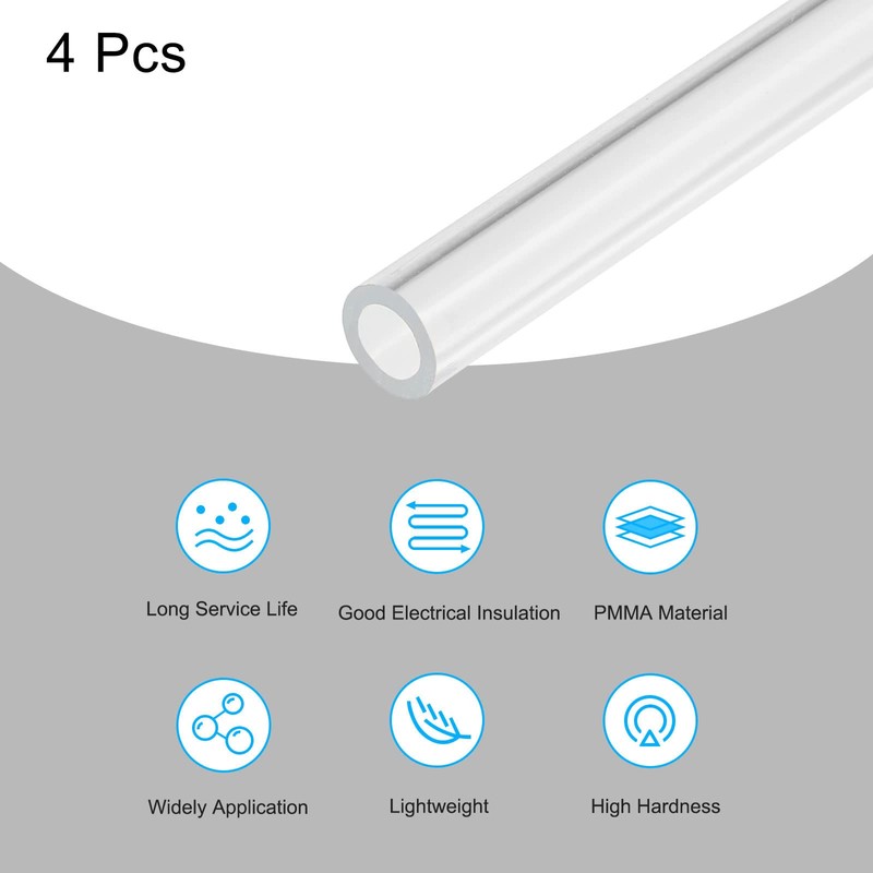 sourcing map Acrylic Pipe Clear Rigid Round Tube 4pcs 8mm ID 12mm OD 6" for Lamps and Lanterns, Water Cooling System
