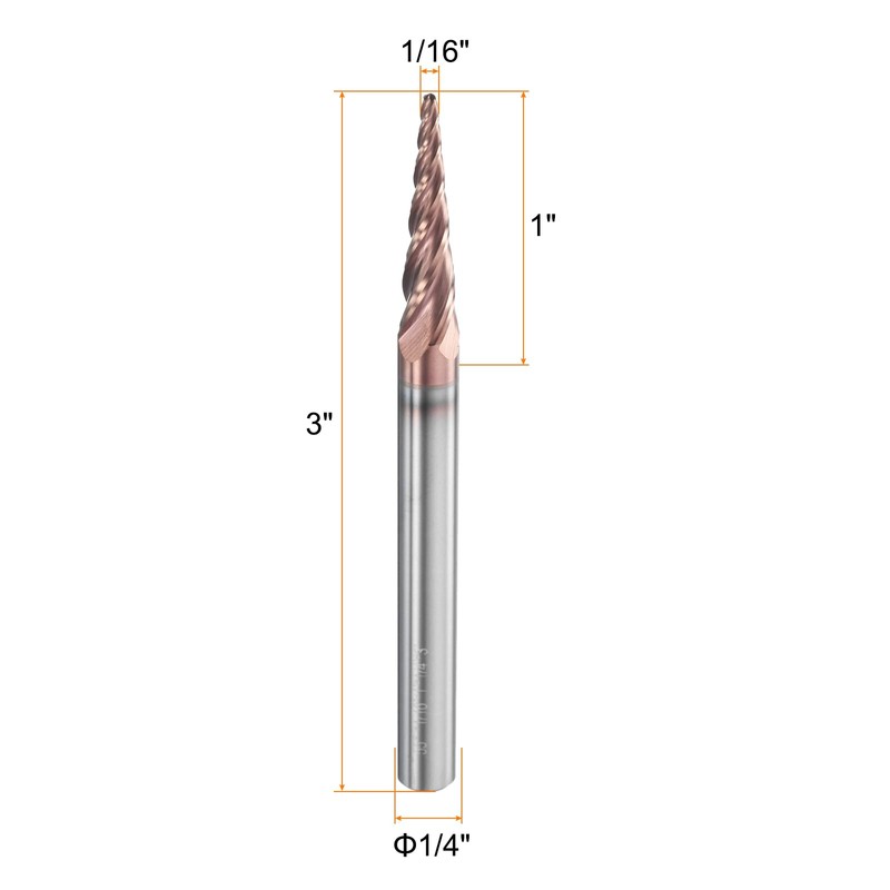 - Feature - The spiral CNC tapered router bit with 4-flute can prevent clogging, and ensure smooth, clean, and precise cutting, resulting in improved cutting performance and highly accurate results.