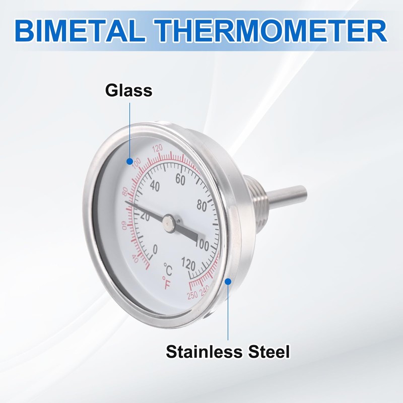 sourcing map Bimetal Thermometer with 2.25in Stainless Steel Stem & 2.5in Dial, 0-120°C Temperature Range, Shatterproof Glass Lens - Industrial Grade