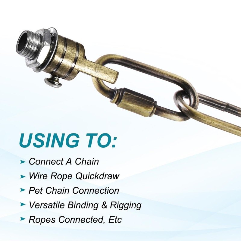 Used to connect chains or fix accessories and is widely used in hanging chains of various chandeliers, candle lamps, crystal lamps, and other lamps. It can also be used for hanging plant baskets, billboards, signboards, backpacks, ropes, and various DIY accessories for securing items.