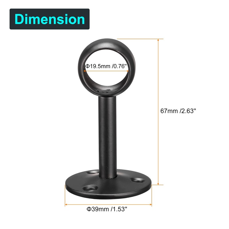 sourcing map Curtain Rod Closet Holders with Screws, 0.76'' Stainless Steel Wardrobe Pipe Lever Bracket, Ceiling Brackets Holder, Black 2Pcs