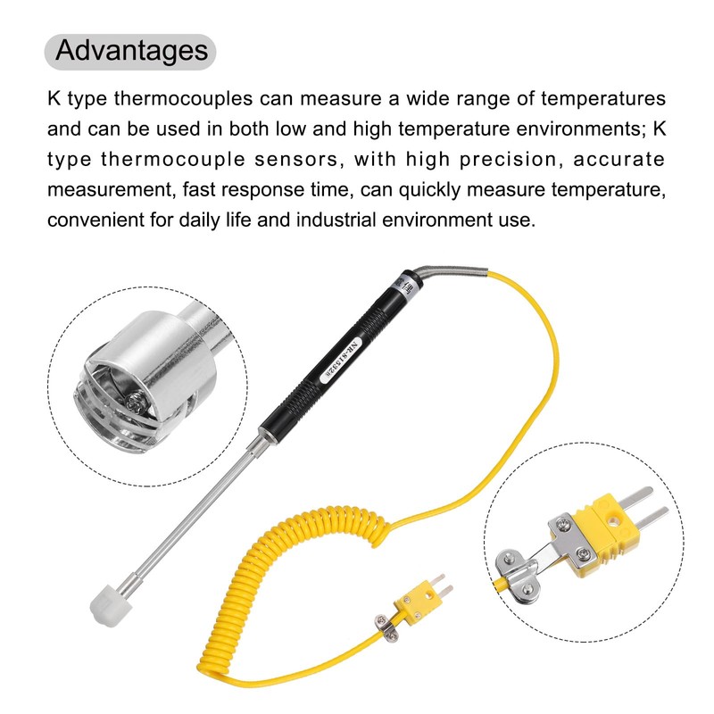 - K type temperature meter are mainly used for temperature control and monitoring, measuring temperature changes, and are widely used in industries, laboratories, HVAC systems, etc., such as furnaces, cooling and heating systems, air conditioning, pipelines, and temperature measuring of liquids, gases, and solids in laboratories. Digital thermometers and surface thermocouples can be used together to measure high and extremely low temperatures in work and daily life