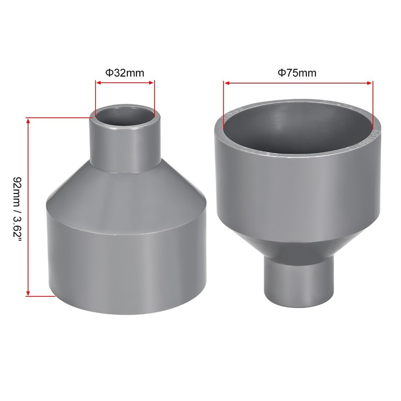 sourcing map DWV Pipe Fitting PVC Pipe Connector 75 mm x 32 mm Grey